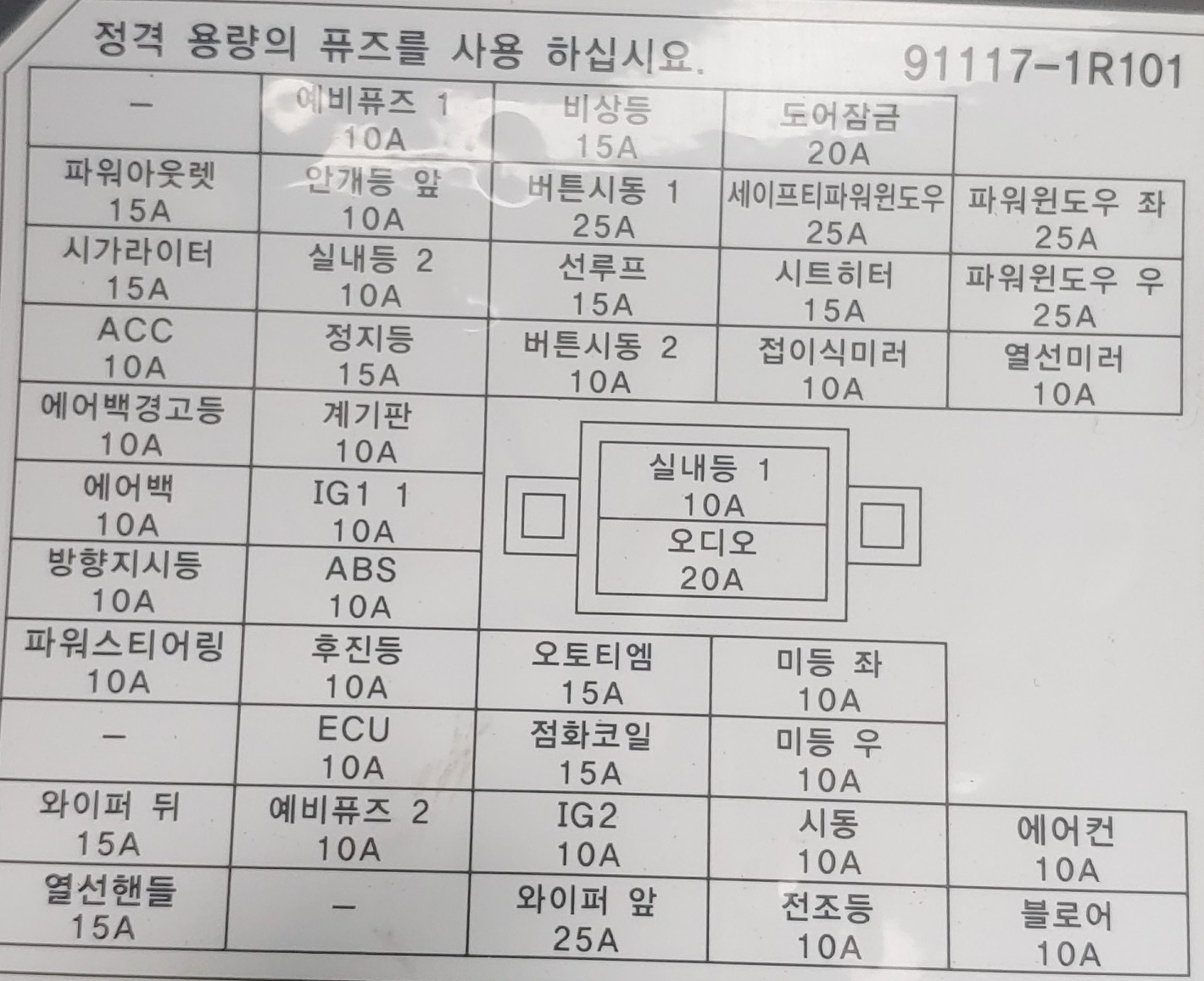 #휴즈 #자동차휴즈 #시거잭 #안개등 #시가라이터 #정지등#에어백경고등 #방향지시등 #파워스티어링 #와이퍼 #열선핸들 #실내등 #정지등 #계기판 #ABS #후진등 #비상등 #버튼시동 #썬루프 #오토티엠 #점화코일 #세이프티파워윈도우 #시트히터 #접이식미러 #미등 #시동 #전조등 #파워윈도우 #열선미러 #에어컨 #블로어