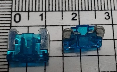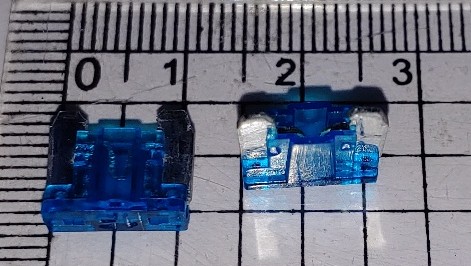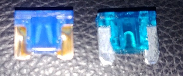 왼족이 타서 끊어진 퓨즈 , 오른쪽이 새 휴즈 (15A)
